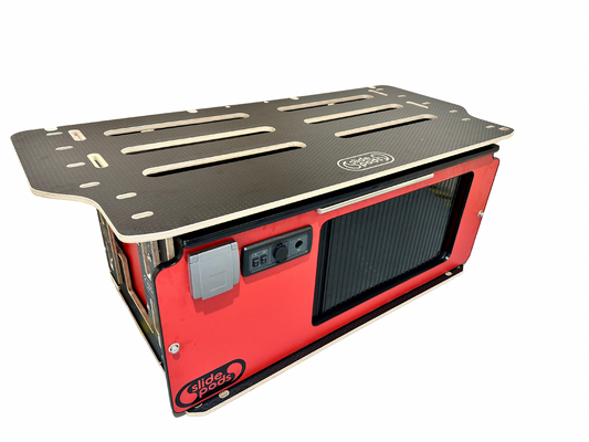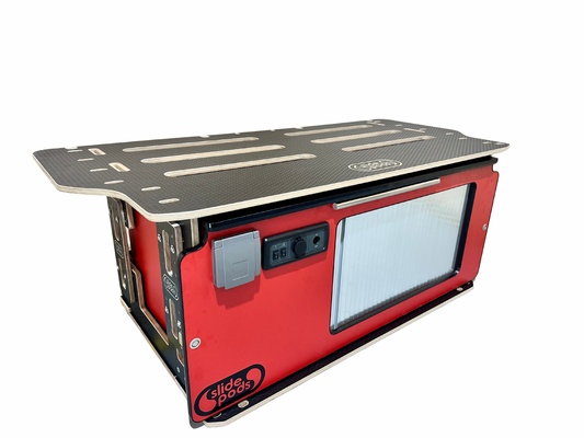 New "Gen 4" Full Spec Slidepod Ultra - Poppy Red With Stainless Steel Tambour Door, Black Trim & Worktop (Available in 2 weeks!)
