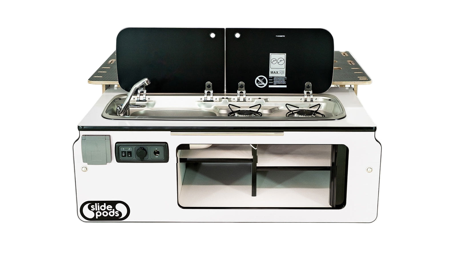 As a carpenter and joiner, I started working on a concept for a removable system that converts a van or MPV into a campervan when you need it and stores away easily when you don’t. What if I could have a work van Monday through Friday, throw in a fully-functioning kitchen and king-size bed on Friday afternoon, and head off for the weekend?