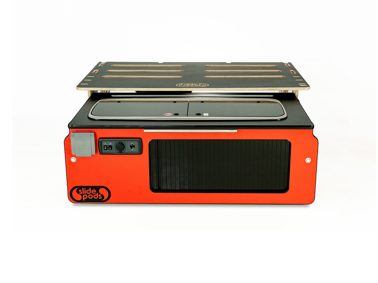 Ideal for camping trips, festivals, weekend getaways, or full-time vanlife. The Slidepod Ultra Compact combines kitchen, water, storage and sleeping into one modular pod.