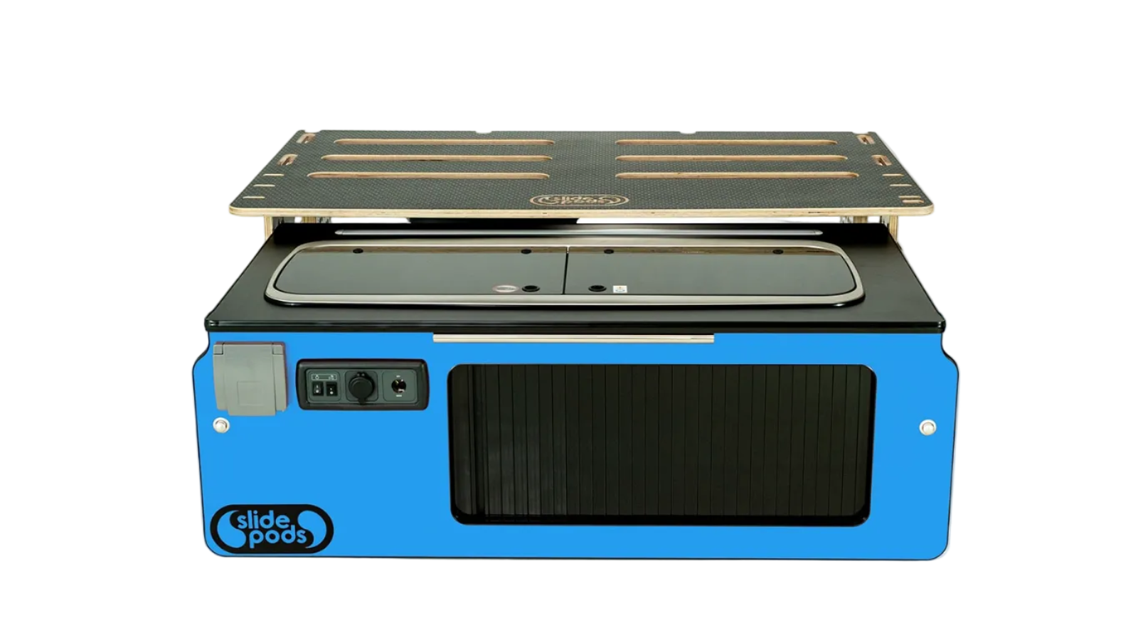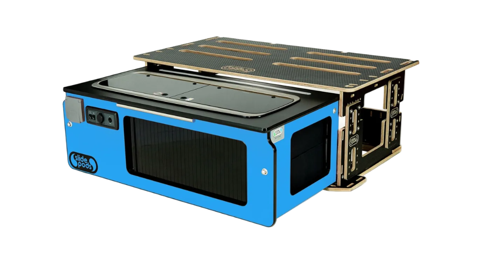 Ideal for camping trips, festivals, weekend getaways, or full-time vanlife. The Slidepod Ultra combines kitchen, water, storage and sleeping into one modular pod.